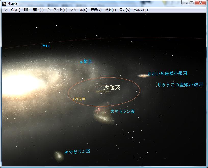 これの良いところは、「PageUp」「PageDown」で、何百光年も先から、ズームアップしたり、引いてみたり、上下左右に動かしたりできて面白いです。